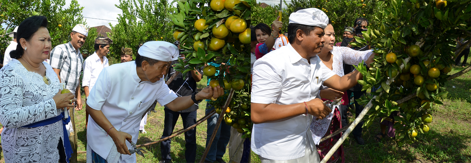 Gubernur Bali Made Mangku Pastika dan wakilnya Ketut Sudikerta, seusai dilantik, serangkaian menghadiri acara simakrama di Buleleng tepatnya di desa Sanggalangit juga menyempatkan diri melakukan panen perdana jeruk keprok Tejakula di desa tersebut, Minggu (1/9). Panen perdana ini diharapkan menjadi awal kebangkitan jeruk keprok yang pernah berjaya di Tejakula.