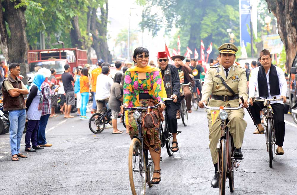 Tidak saja menaiki tunggangan klasiknya, para peserta yang tergabung dalam Komunitas Sepeda Tua Indonesia (Kosti) di masing-masing daerah di Indonesia ini juga menggunakan berbagai atribut layaknya jaman kerajaan dan penjajahan. Antara lain ada yang berpakaian ala proklamator Bung Karno, tentara Indonesia, tentara Jepang dan Belanda hingga berpakaian ala rakyat jelata.